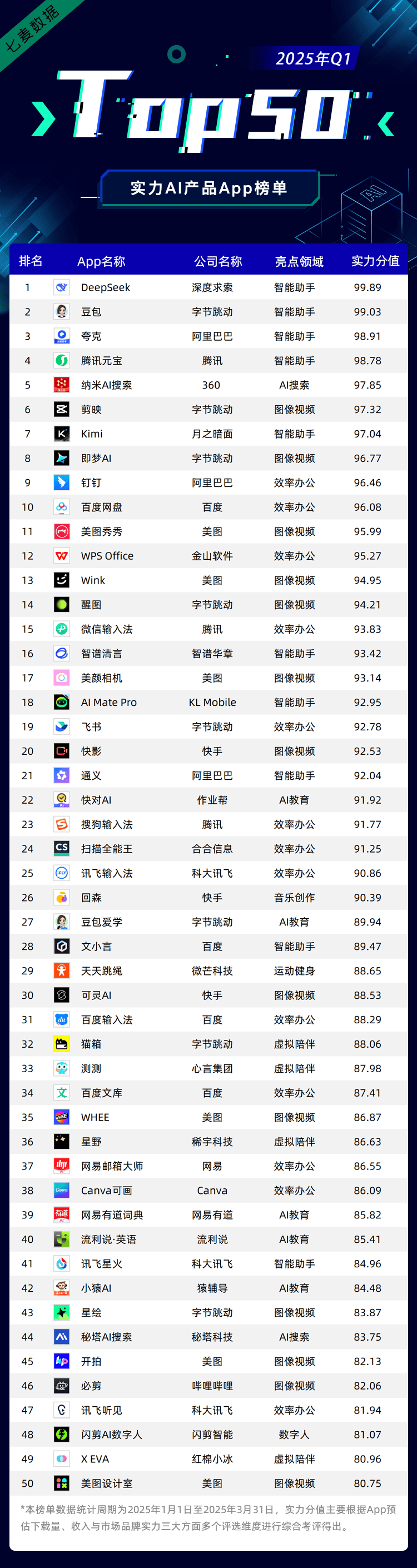 推出了《2025年第一季度iOS实力AI产物排行榜》,其不只包含了AI搜刮、AI总结、AI写做等焦点功能,25年岁首年月至今,