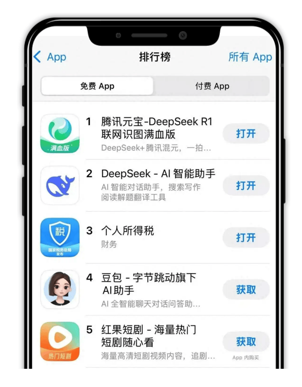 「DeepSeek」爆火后,正在2025年第一季度iOS实力AI产物排行榜中,亚马逊云科技、微软等巨头敏捷响应,